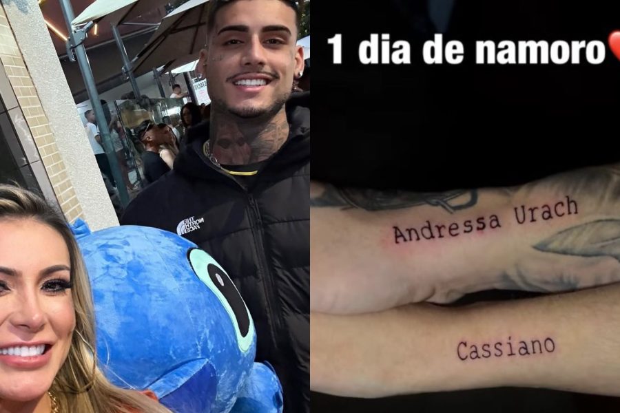 Nesta quarta-feira (4), Andressa Urach e Cassiano França mostraram como eles celebraram o primeiro dia de namoro. A influenciadora tatuou o nome do affair no braço, já o criador de conteúdo fez questão de tatuar nome e sobrenome da amada.